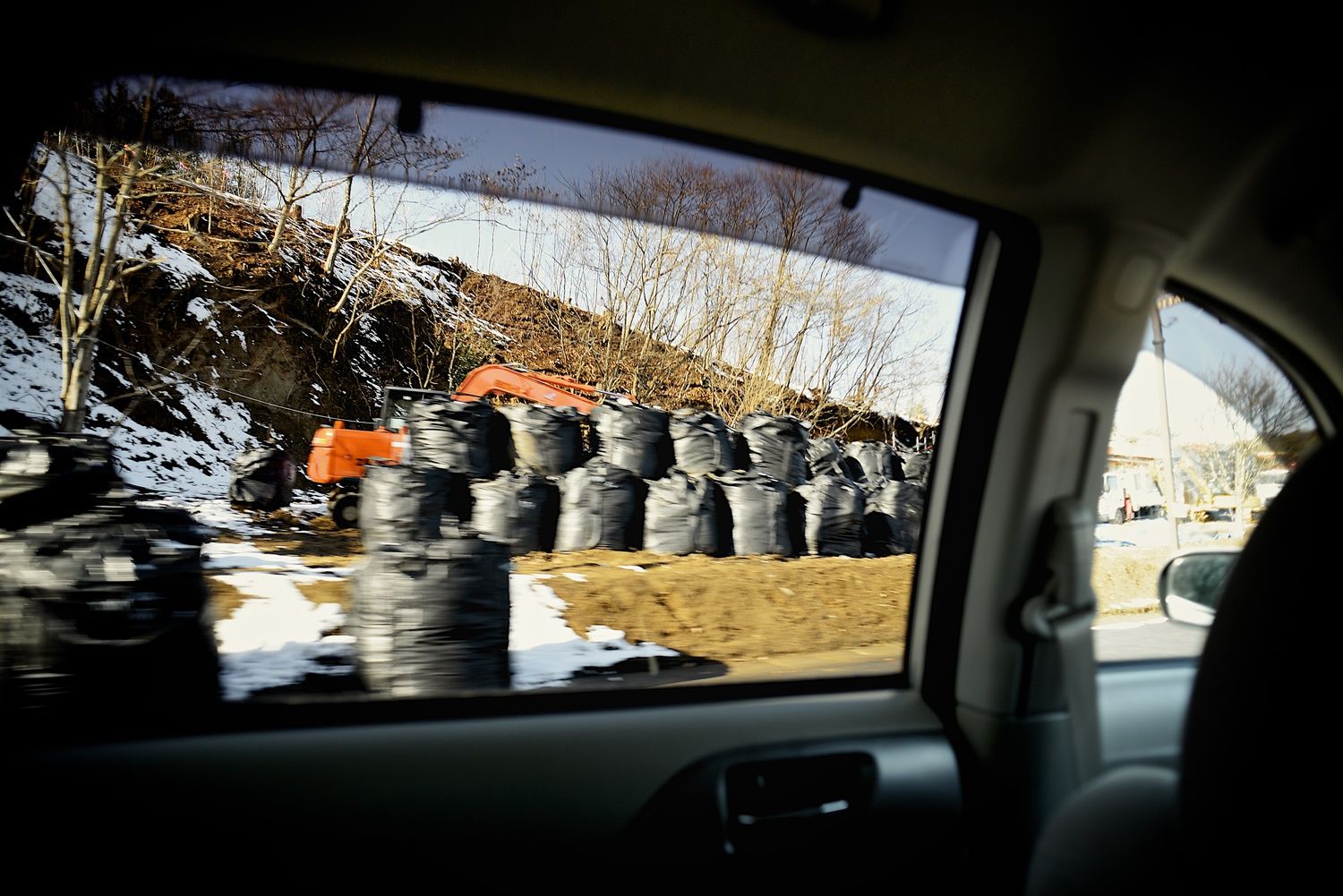 In Iitate we discover the mountains of contaminated earth in their black bag. Everywhere. Homeowners have to keep their nuclear waste for 30 years, on their property, in plastic bags, that won't last 10 years. I'm not sure I understood the decision chaos that led to this decision.