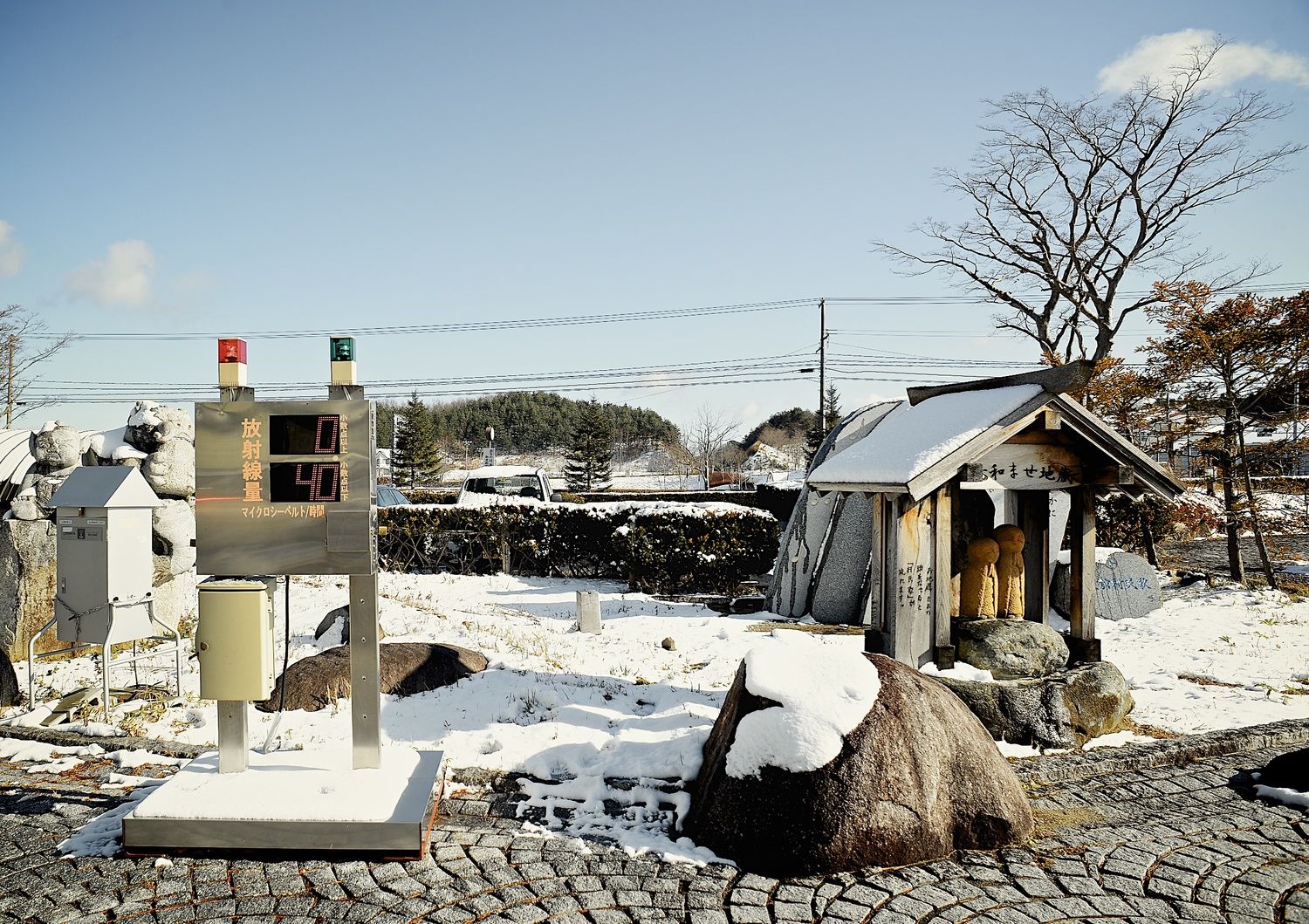 At the town hall of Iitate, the municipal Geiger counter has taken place next to cute handcrafted sculptures. One can imagine the tourists who came from Tokyo to the Iitate before 2011.